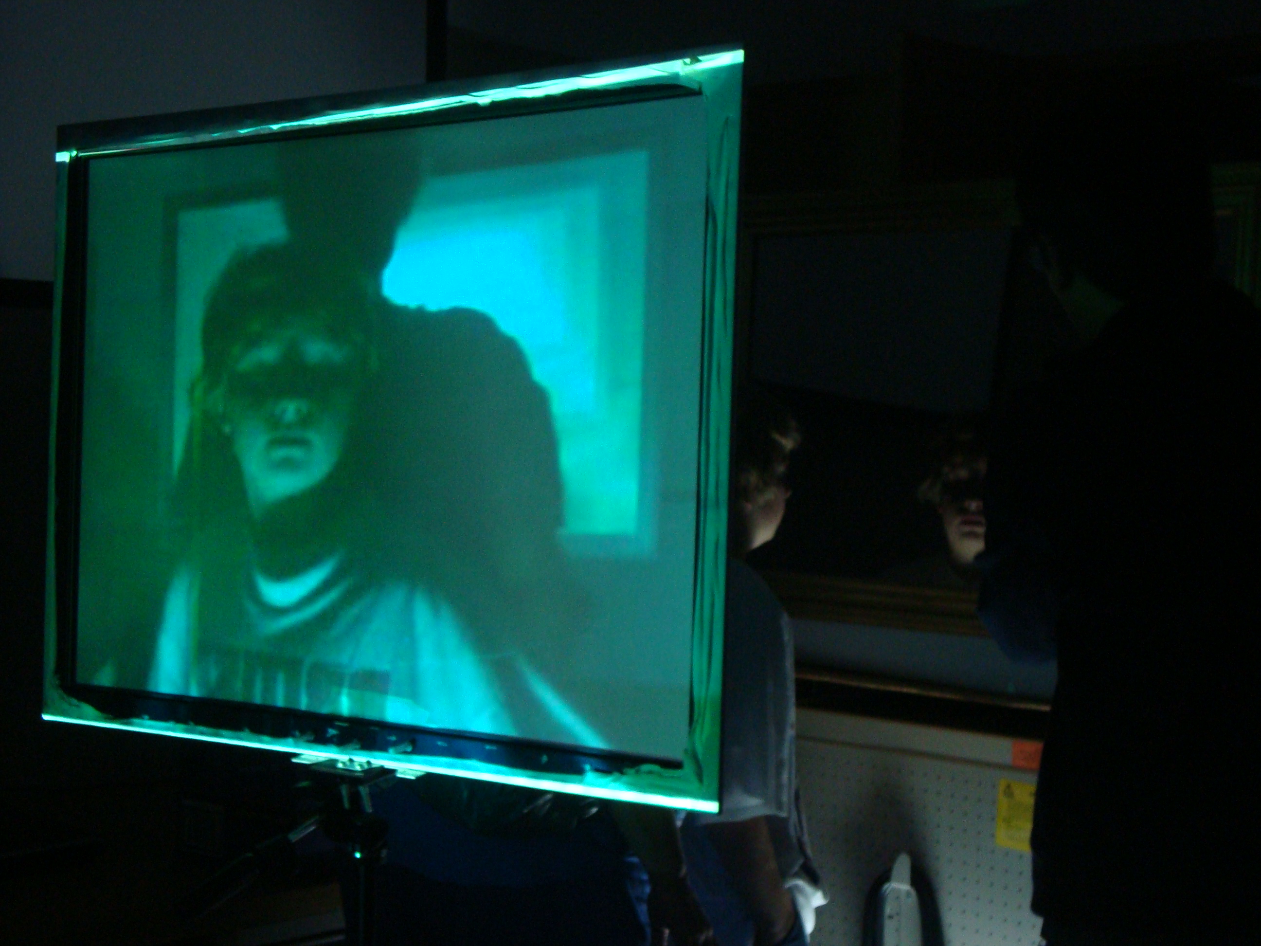 Arash Sabha played with ideas about time and infinity in his work, Revisited, which uses mirrors, motion sensors, and a video camera.
