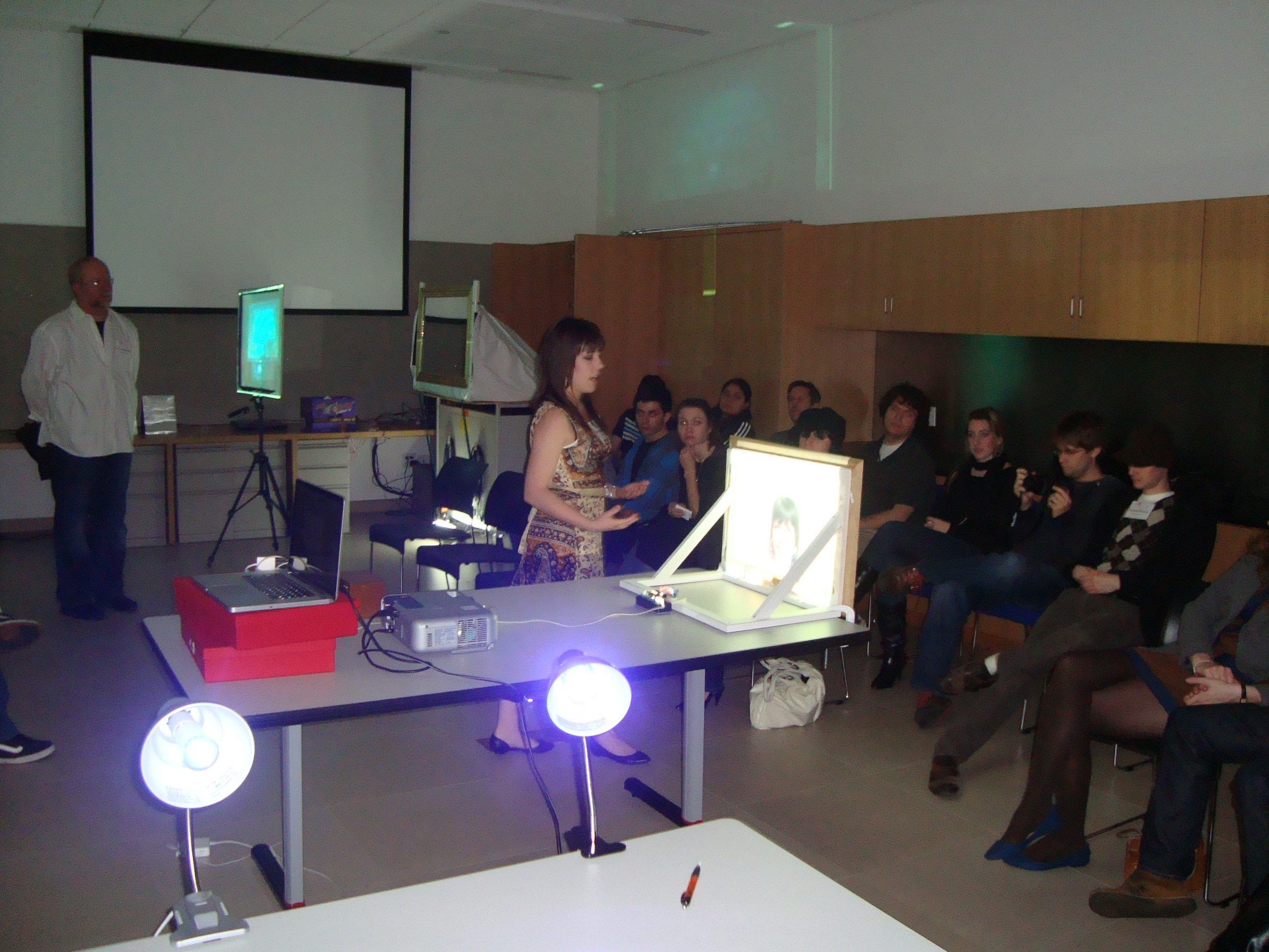 Late Night visitors enjoyed Christina Day's interactive self-portrait. Animated images of the artist projected on a lycra screen change when visitors touch the screen.