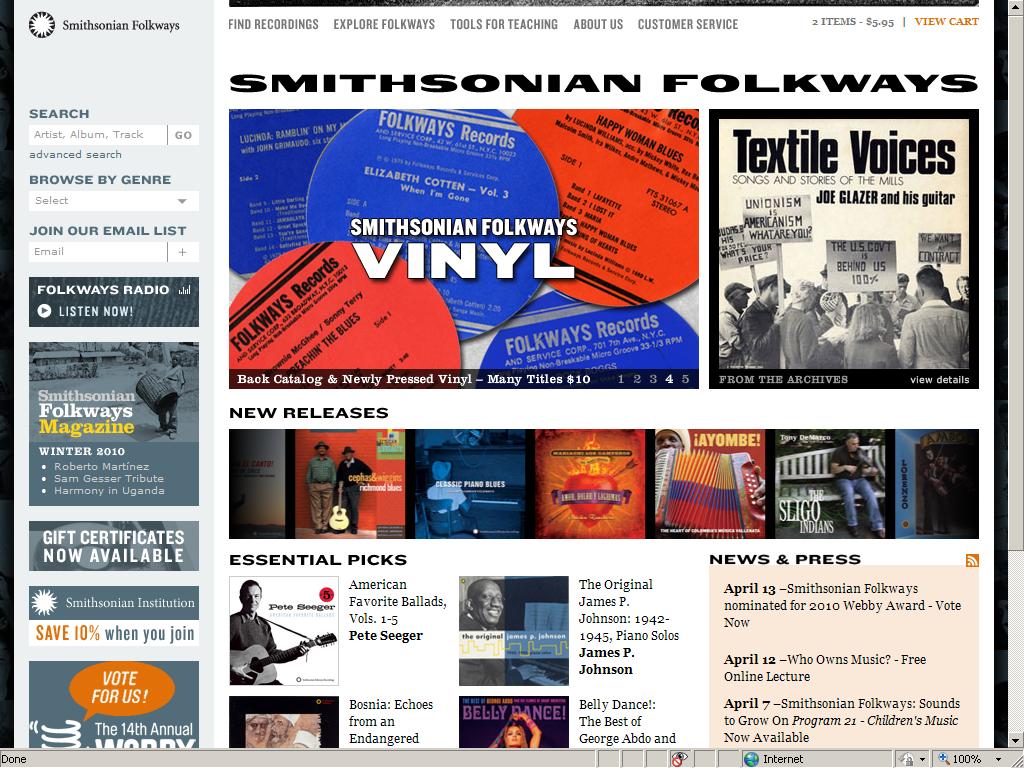 During the 2009-2010 school year, Museum staff downloaded music from the Smithsonian Folkways website for use in the galleries with the students in the Dallas ISD/ DMA Talented and Gifted (TAG) Museum Program.  With a focus on common ideas about being human, TAG students listened to and identified song types (i.e. lullabies, wedding, funeral, and work songs) universal to all peoples.  Song selections included the following: