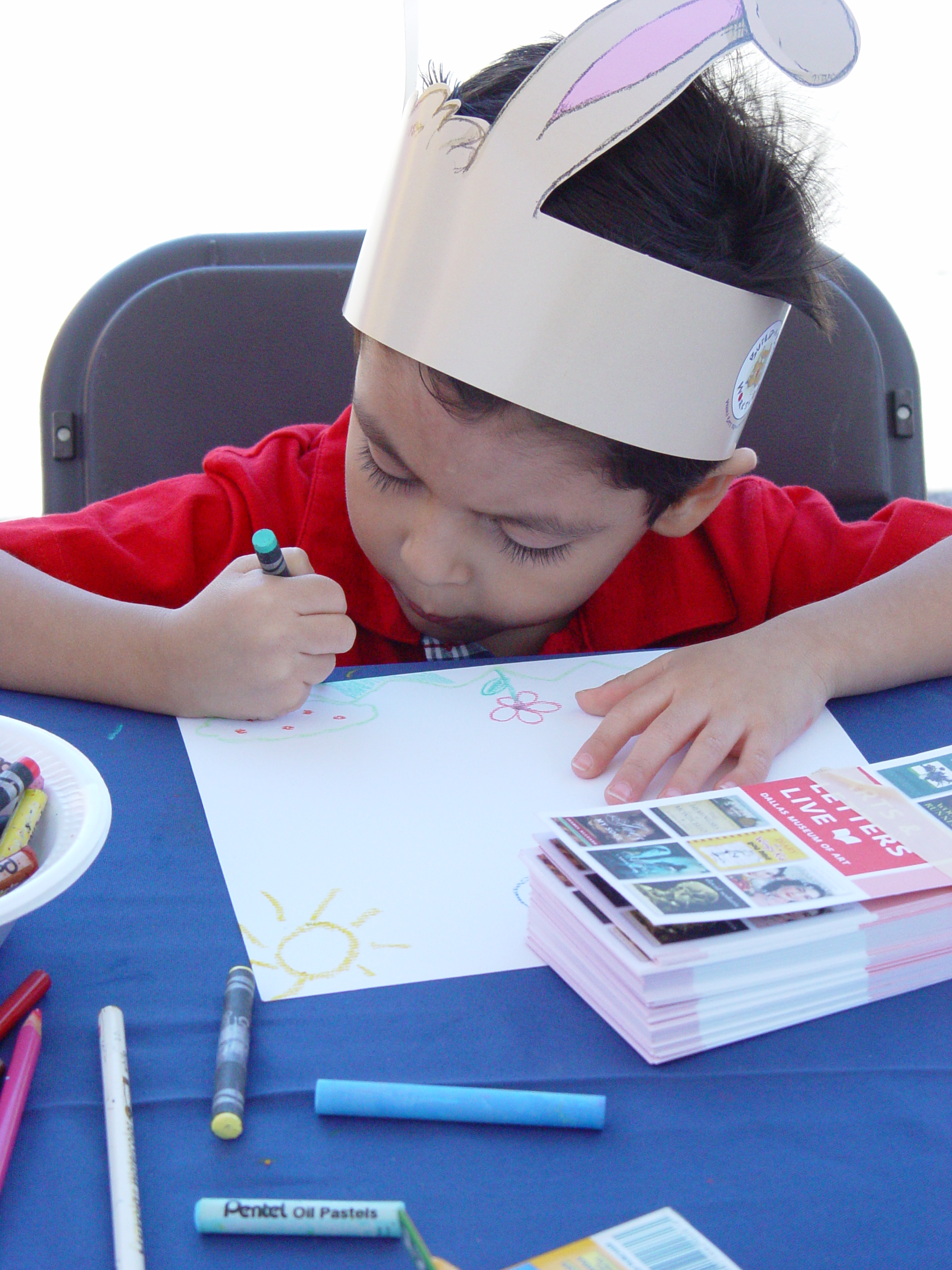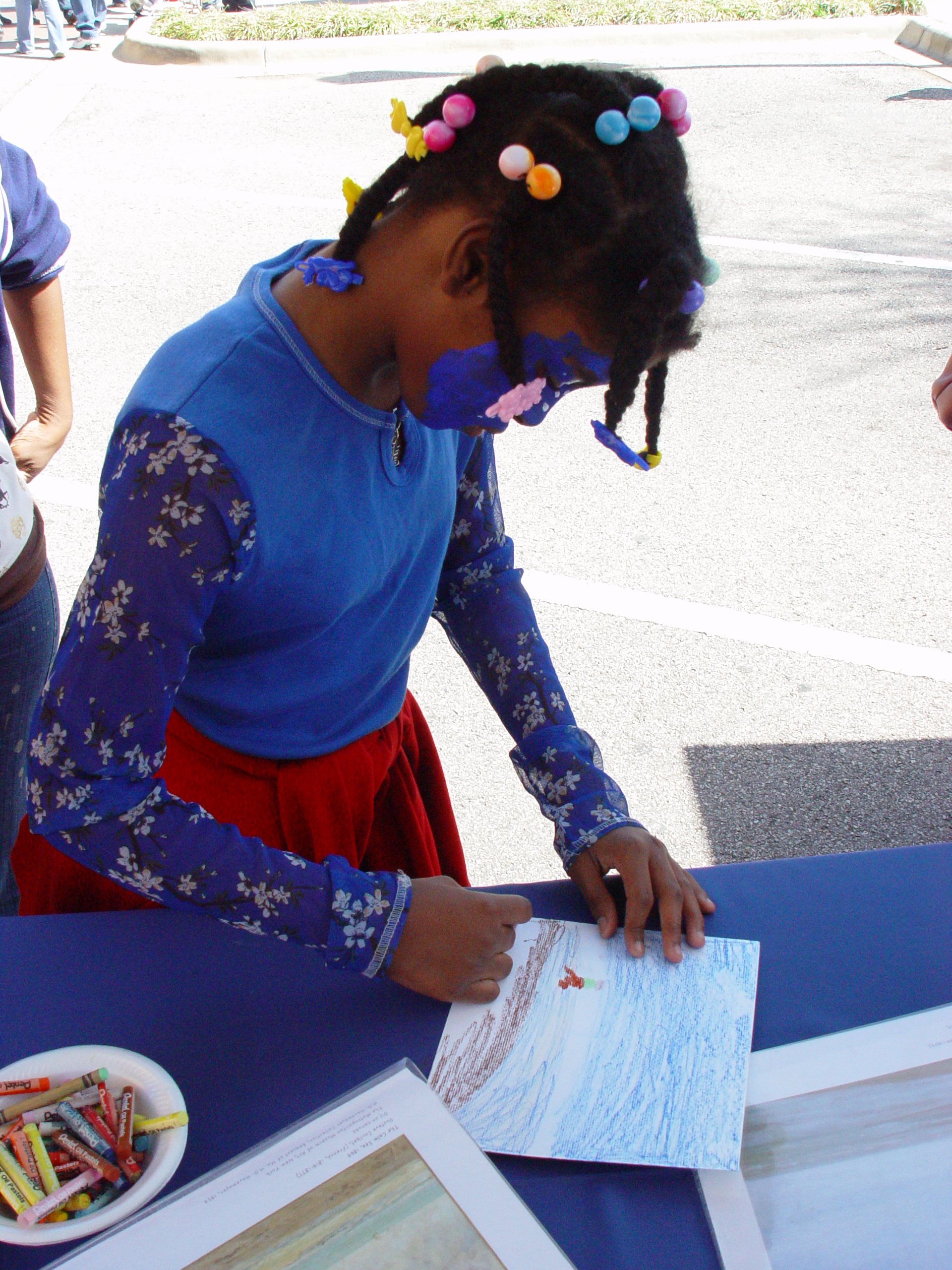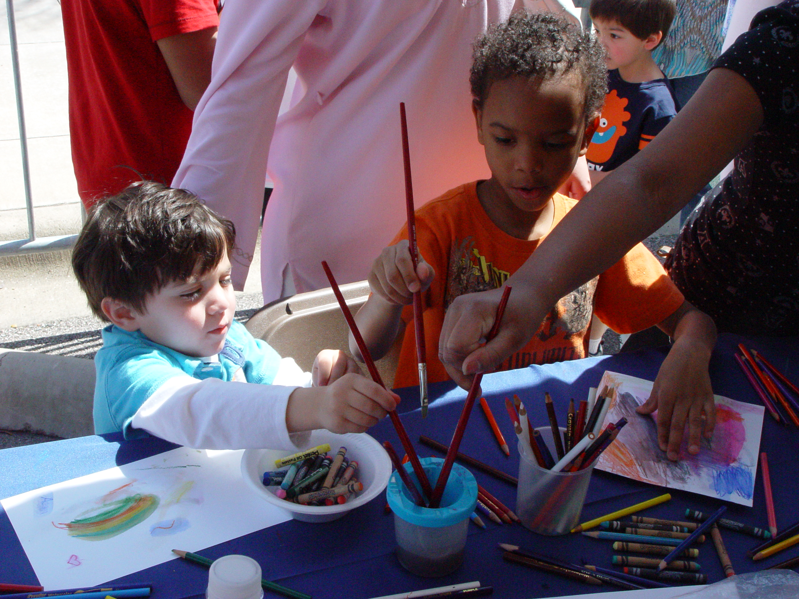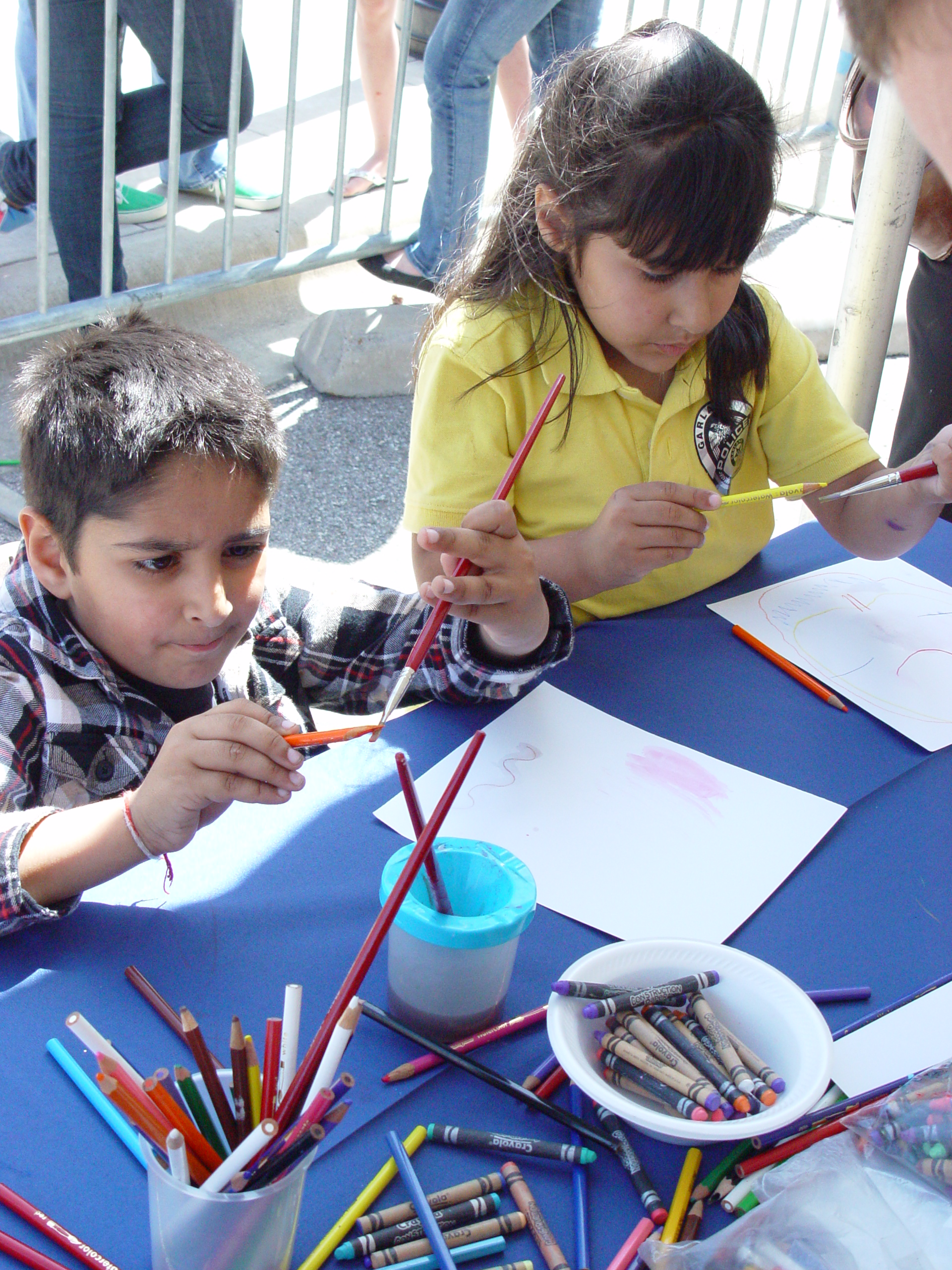 Amy Copeland and I recently took the Go van Gogh van out to Firewheel Town Center for KidsFest 2010. We set up shop in a booth on the square, setting out watercolors, colored pencils, crayons, and oil pastels. We had an amazing turnout– over one hundred kids made a work of art!