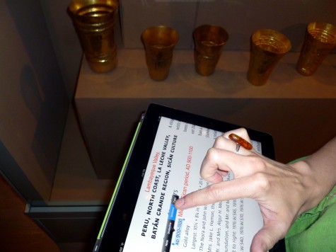 A registrar compares submitted text for an upcoming publication to the text on the object labels in the galleries. Her edits on the iPad can then be saved and emailed to the Publications Department before she ever leaves the galleries.