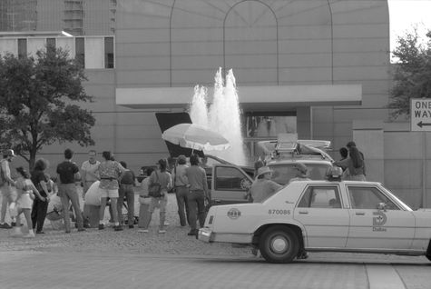 In 1990 a car commercial was filmed in front of the Museum’s Ceremonial Entrance at Harwood and Flora streets. As you can see, he drew quite a crowd.