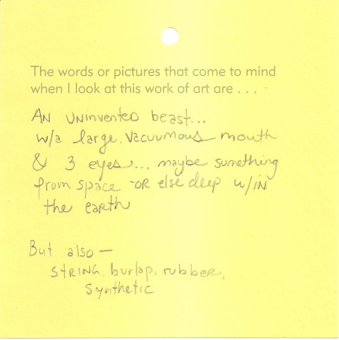 For one work of art specifically, Lee Bontecou’s Untitled, we ask visitors to respond to one of three prompts: