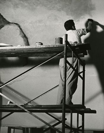Artist H. O. Kelly demonstrates painting in the Museum Court during the 1960 State Fair. An H. O. Kelly Retrospective was one of the Museum’s exhibitions for the 1960 Fair.