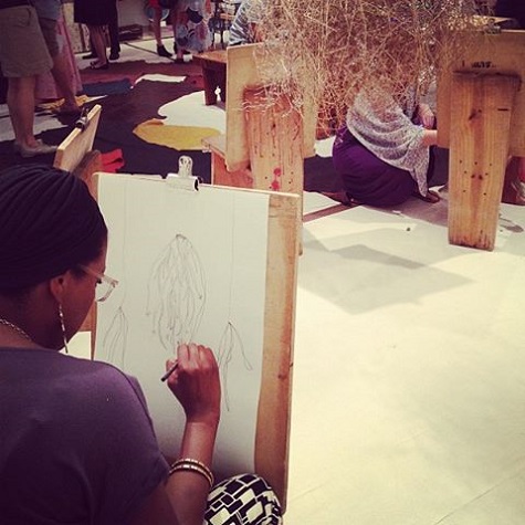 I have had the opportunity to help coordinate the Oil and Cotton space, where you can exercise your creative side with a hands-on activity almost every hour of the day (and you can find more hands-on making at the Center for Creative Connections or the Pop-Up Art Spot)! Check out some pictures from the activities we’ve done so far: