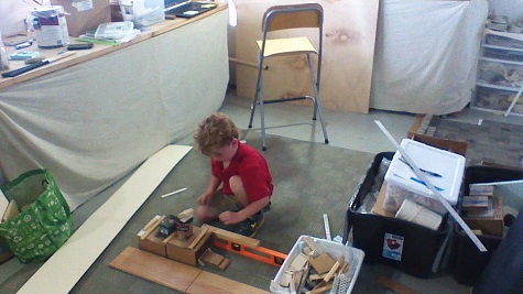Liam, Lesli’s son, playing in her studio