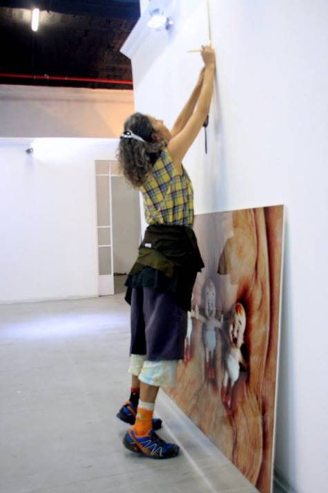Shira installing a gallery show