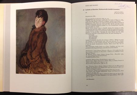 As the project progressed, interesting findings began to emerge that brought Wendy and Emery Reves and the history of the DMA collection to life. For example, auction catalogs annotated by Emery Reves gave us a glimpse into their collecting habits and interests. Lot 18 of this Sotheby’s catalogue from 1974 was Edouard Manet’s Portrait of Isabelle Lemonnier with a Muff, now in the DMA’s collection; however, it wasn’t Wendy and Emery Reves who purchased it. A close-up of the annotation reads “100,000 Schmit (Paris).” That is a reference to Galerie Schmit. According to the provenance for this painting, it was then acquired by Mr. and Mrs. Algur Meadows, who gifted it to the DMA in 1978.