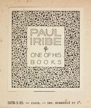 The keen eye of our cataloger discovered this bookplate of Paul Iribe, a French fashion illustrator and interior designer, on the last page of Spinoza’s Ethique. Iribe died in 1935 while visiting Coco Chanel at La Pausa, the French Riviera villa later owned by Wendy and Emery Reves.