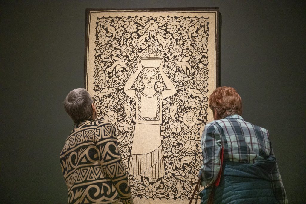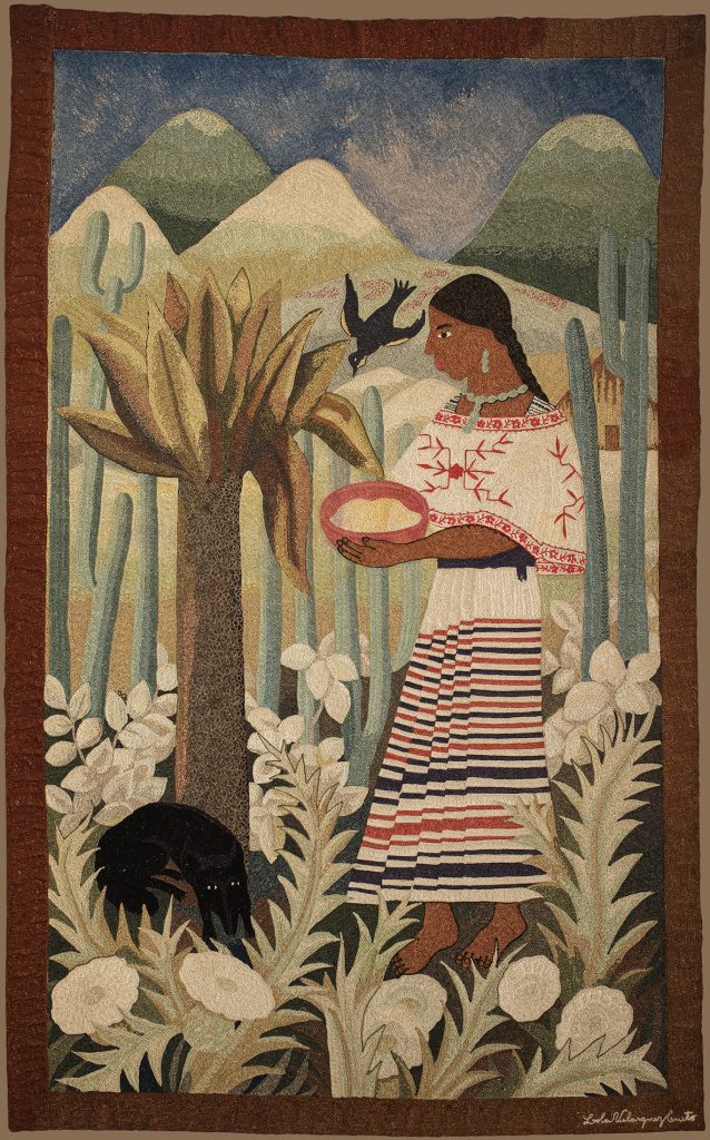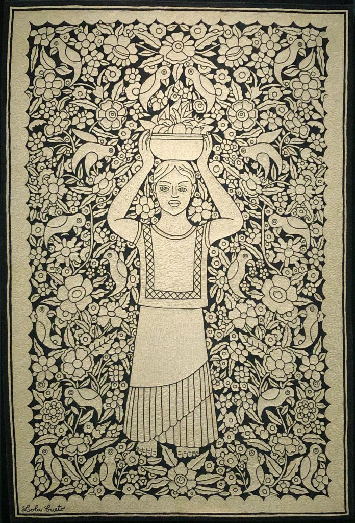 Lola Cueto’s tapestry Tehuana (Fruit Seller), on view in Flores Mexicanas: Women in Modern Mexican Art