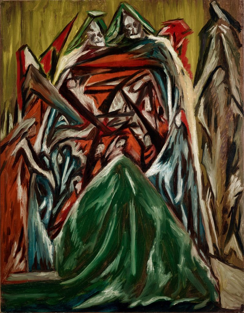 While the narrative of US art history has focused on the singular achievements of Abstract Expressionism, it did not emerge on the world scene ex nihilo. Rather, US artists drew from multiple precedents, including the Mexican mural movement, which has special resonance for us at the DMA given our longstanding strengths in art from the region. In Slip Zone, Jackson Pollock’s Figure Kneeling Before Arch with Skulls is paired with Crepúsculo by David Alfaro Siqueiros. Siqueiros taught Pollock to use industrial paints at the Experimental Workshop in New York in 1936, which would later inform his use of nontraditional art media in his classic era drip paintings. The expressionistic pathos of this earlier Pollock painting also mirrors the influence of José Clemente Orozco, whose murals he had seen at Dartmouth College the same year.