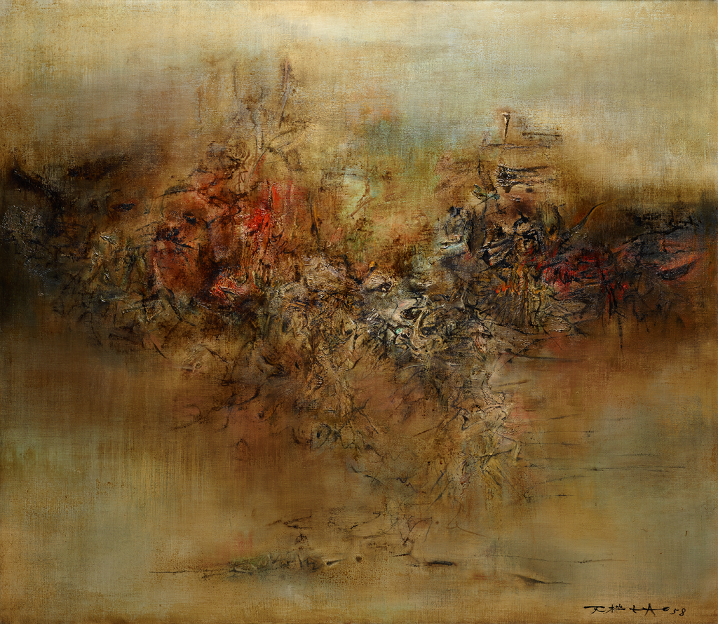 Mira Schendel and Zao Wou-Ki drew upon language and its myriad graphic forms to create intricate works of abstraction. As postwar émigré artists—Zao in France and Schendel in Brazil—both were acutely receptive to the multiple sources of conceptual and material inspiration they encountered, including European modernism, phenomenology, and East Asian philosophy and calligraphy. In 1951, upon seeing Paul Klee’s fascinating use of line while visiting Switzerland, Zao returned to his earlier training in calligraphy to create compositions of atmospheric energy and ecstatic lines. Schendel’s compulsive repetition of icons, symbols, and signs also embraces the spontaneity and transcendent possibilities of language and abstraction informed partly by her interest in Zen philosophy and calligraphy.