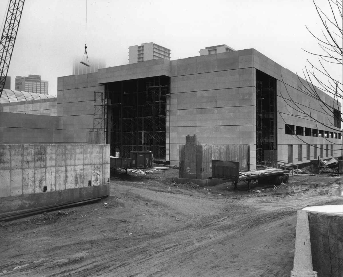 Ed Clark is an American abstract expressionist and pivotal Black artist in the DMA’s collection who experimented with shaped canvases. His large-scale painting Intarsia is on view for free in the exhibition Slip Zone: A New Look at Postwar Abstraction in the Americas and East Asia. To create this work, he laid raw canvas on the floor, poured acrylic paint directly on the surface, and spread it across the canvas with a push broom in a performative process. The title of this painting refers to a knitting and metalworking technique used to create fields of different colors that appear to blend in and out of one another. Combined with the elliptical shape of the canvas, which Clark saw as evocative of the shape of an eye, the radiant colors give the overwhelming sense of an expanding, pulsating image. Find out how our team of art conservators and preparators worked to preserve this work’s thick layers of paint by stretching the canvas before displaying it.