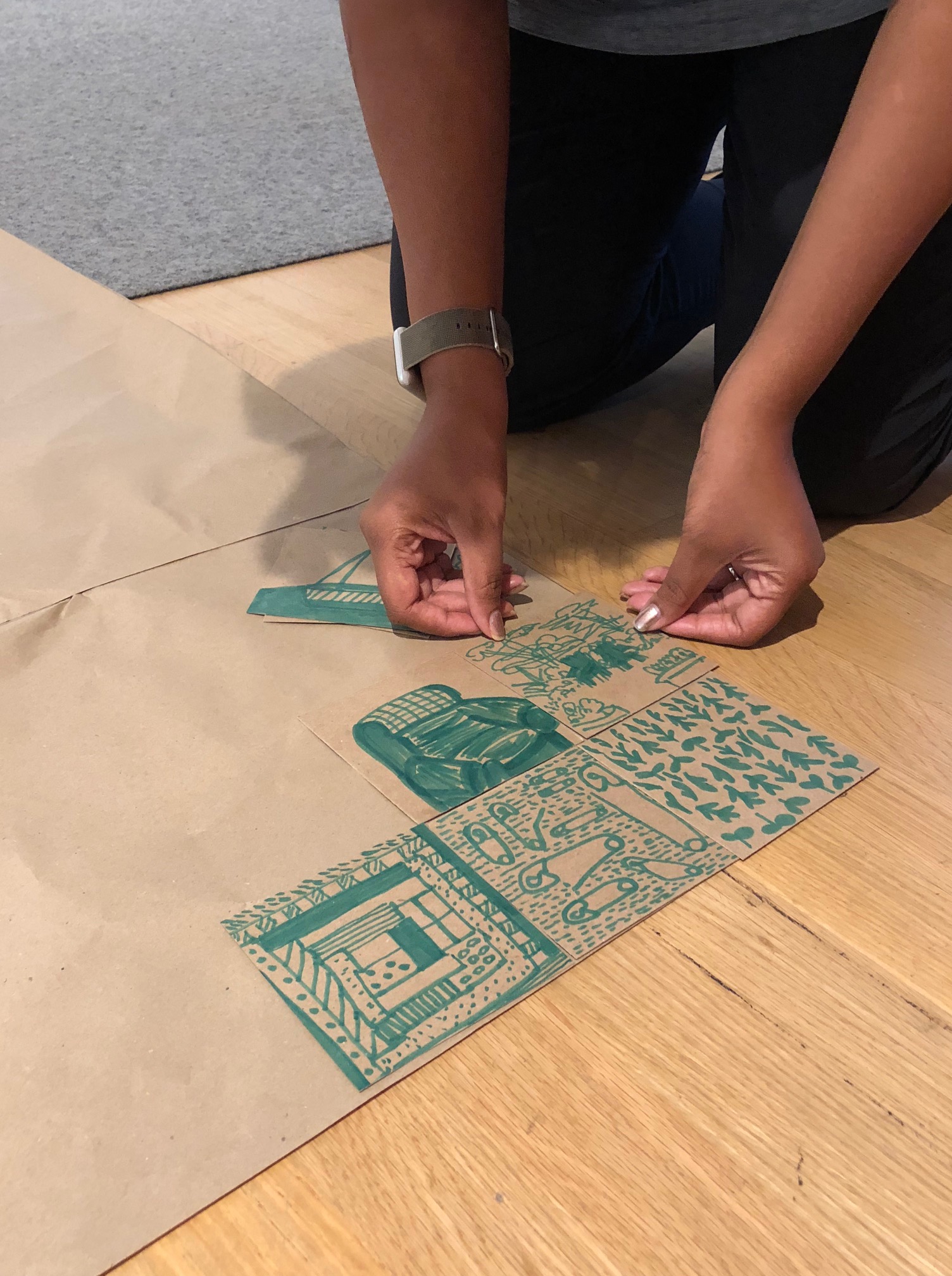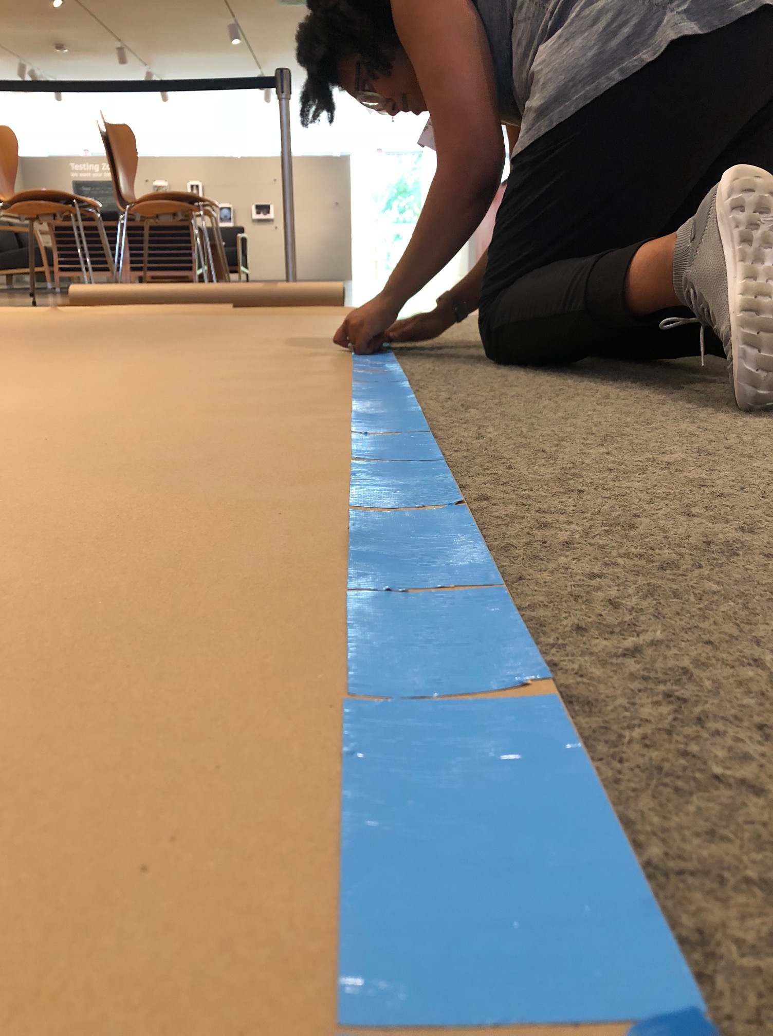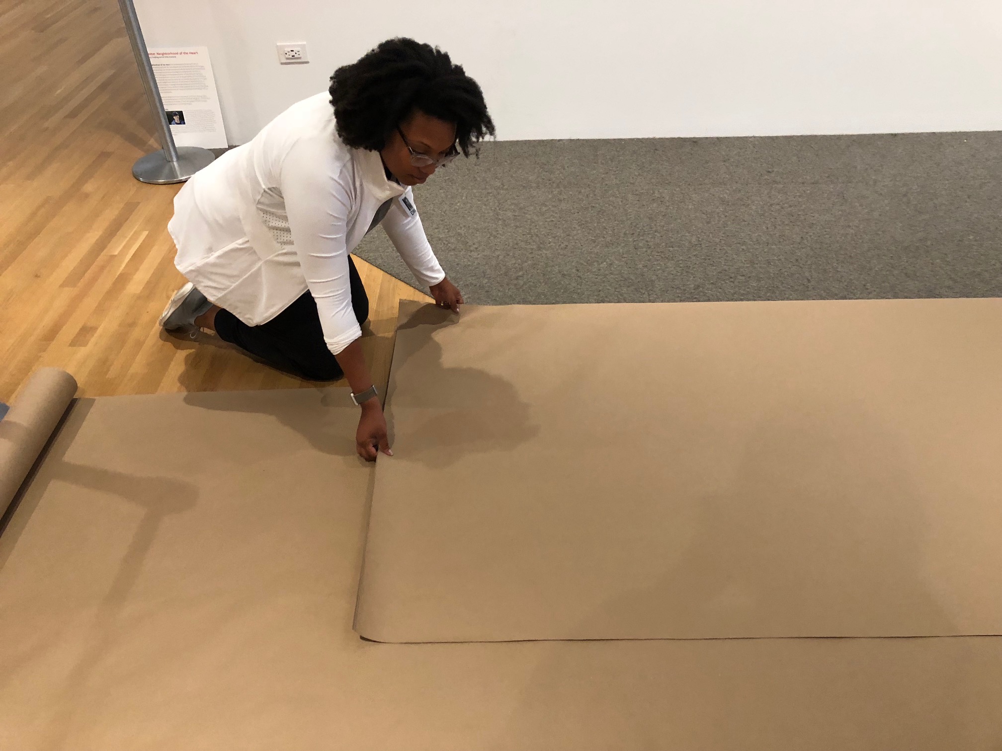 Why she chose this work: When I was first introduced to the work of Annette Lawrence, I saw so much of the work that I do reflected: the use of brown paper and the connection to personal narrative. Her work Anna Cooper Lawrence is not only related in its use of material but also in her use of family history, a key element in my own practice. My work at the DMA, Assembly, embodies all these qualities with visitors in its use of brown paper and its connection to the familiar among us.
