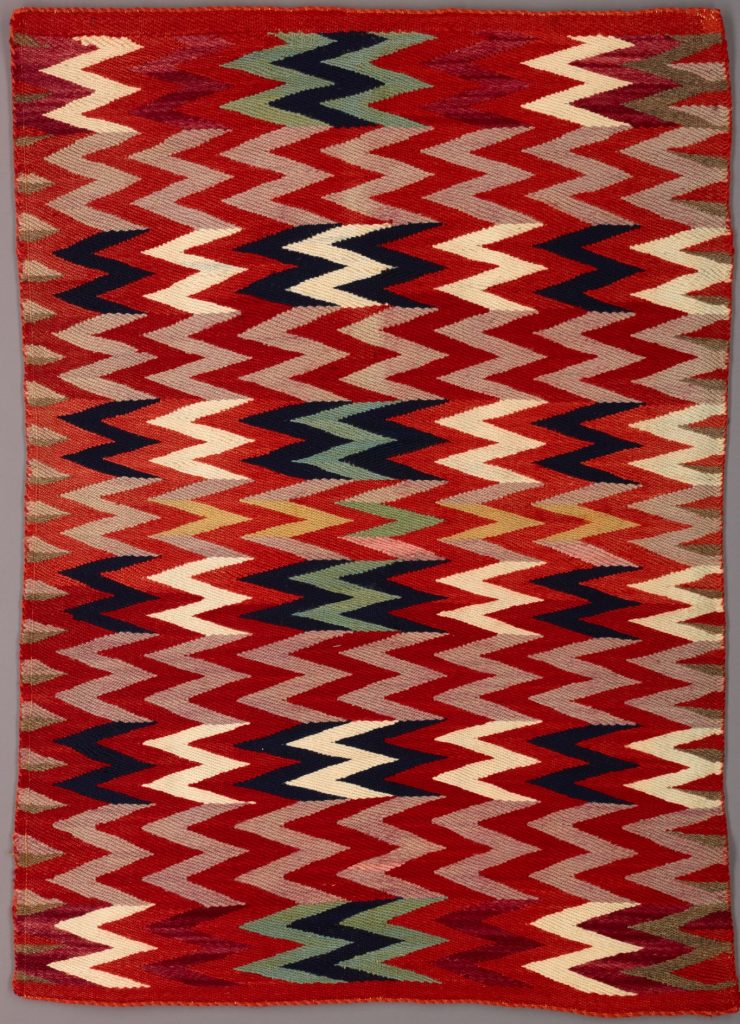 Why they chose this work: Our artistic practice investigates the importance of work, especially work by women not credited to the maker. Women are the weavers in many cultures. The Navajo culture’s creation myth tells of Spider Woman, who taught people how to construct looms from the elements: sky, earth, sun, lightning, and crystals. We selected the eyedazzler textile to celebrate women’s work in textile technologies.