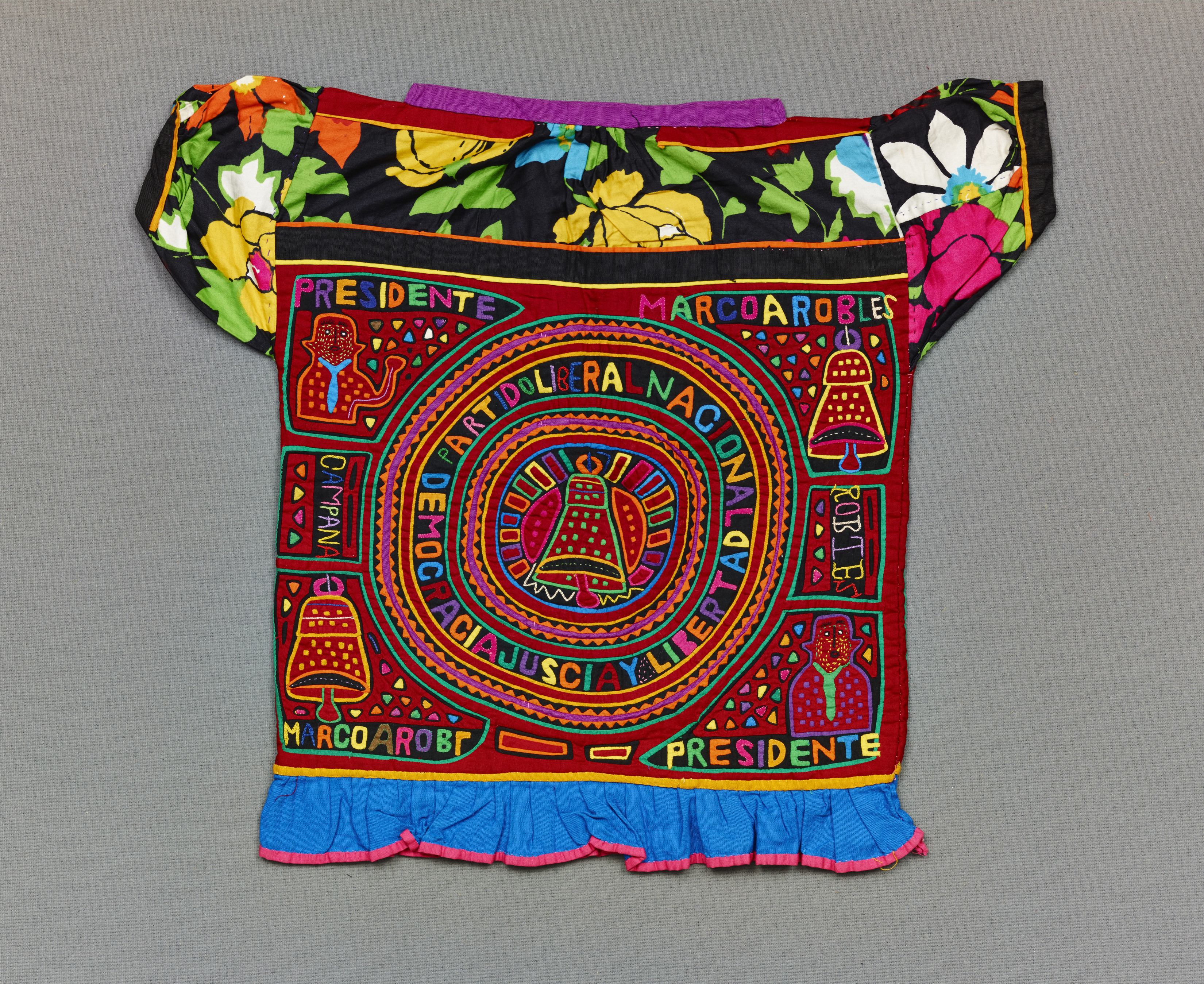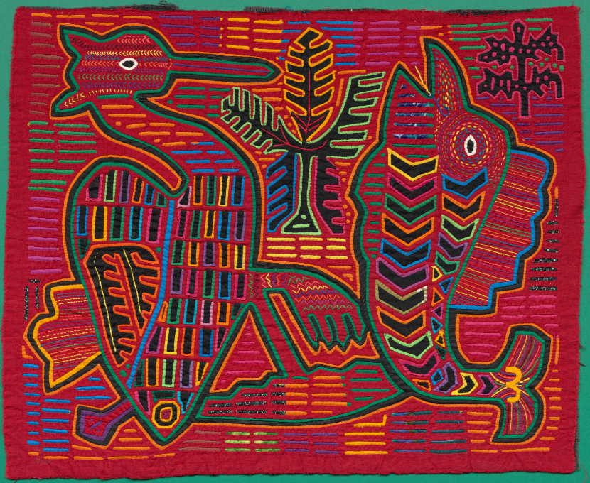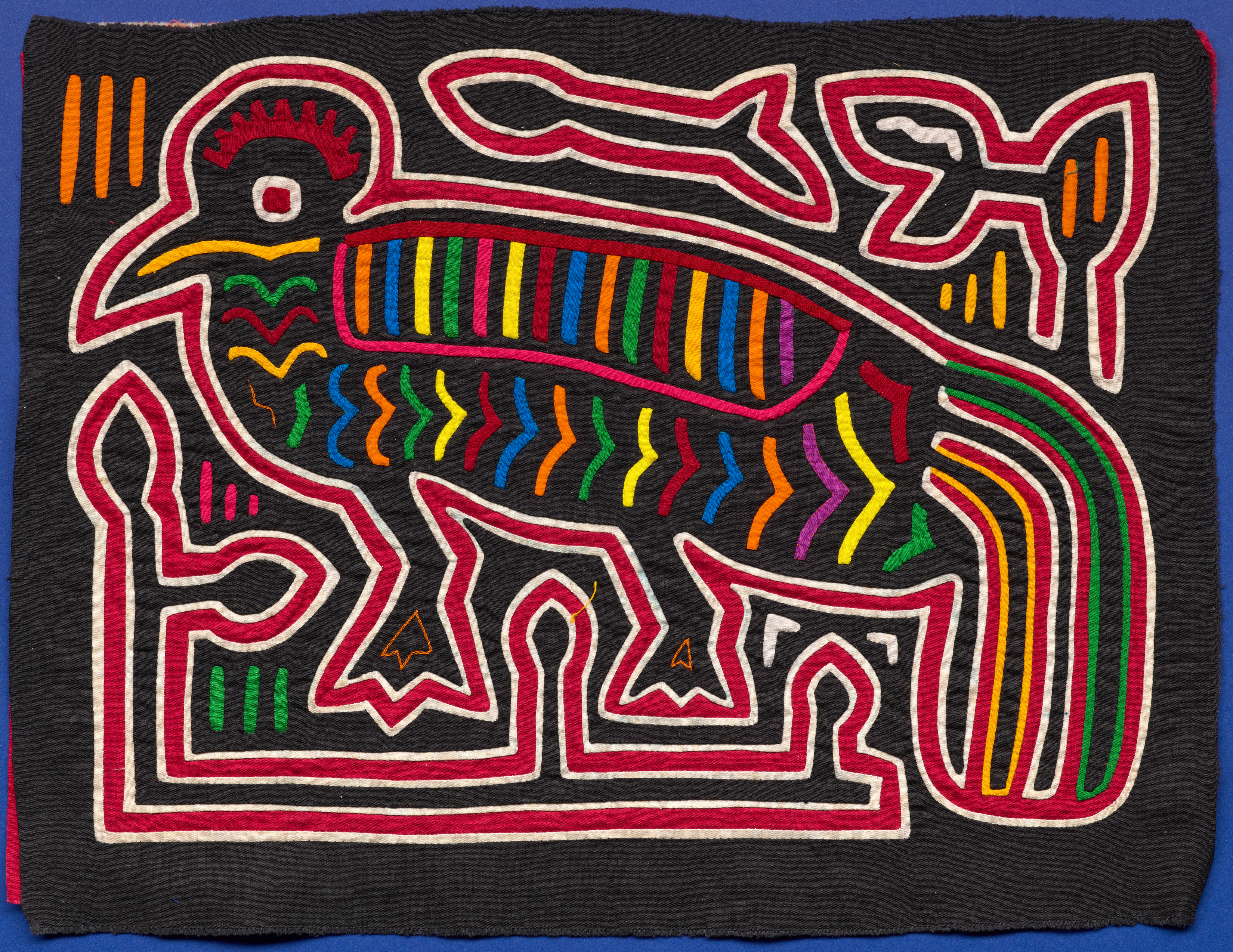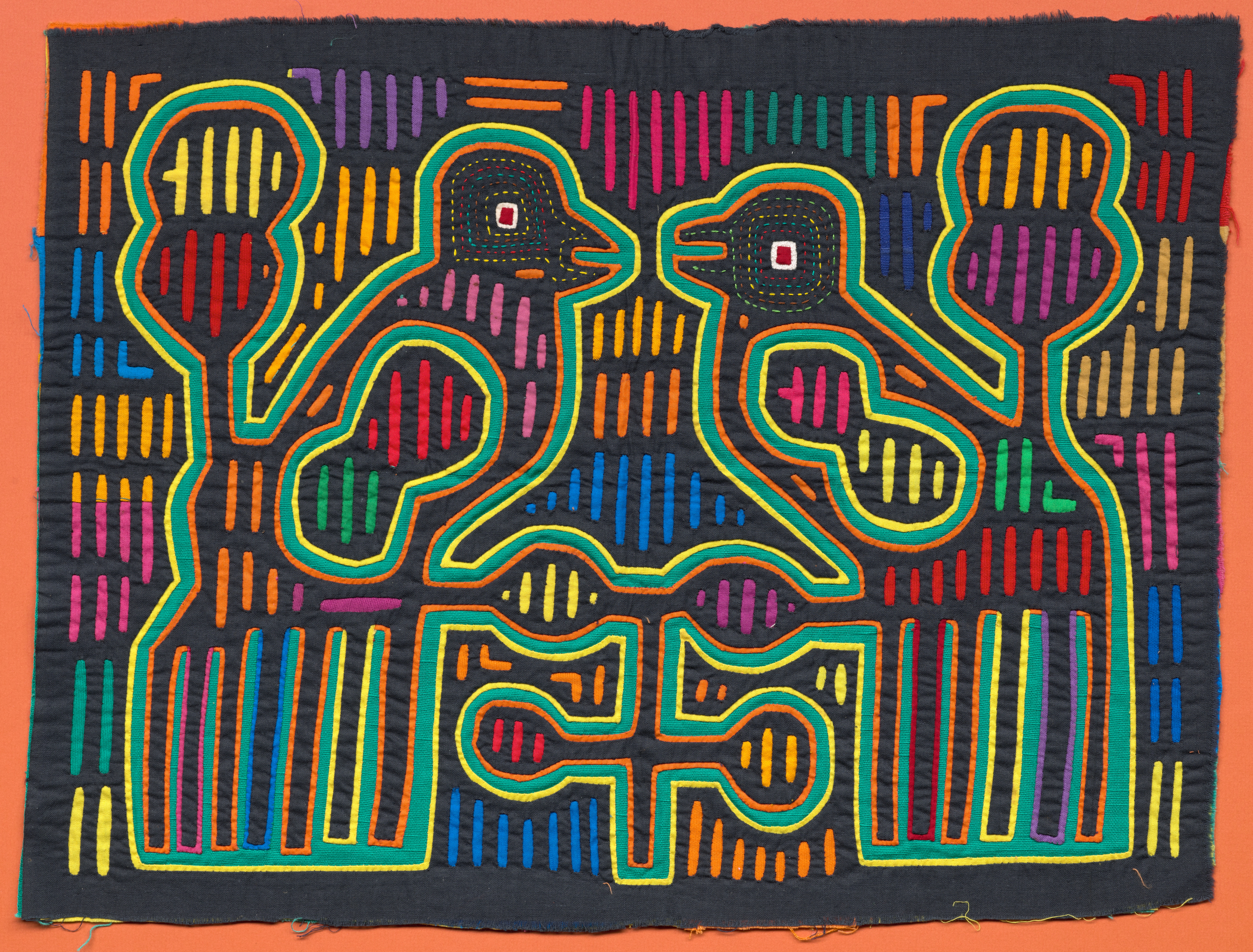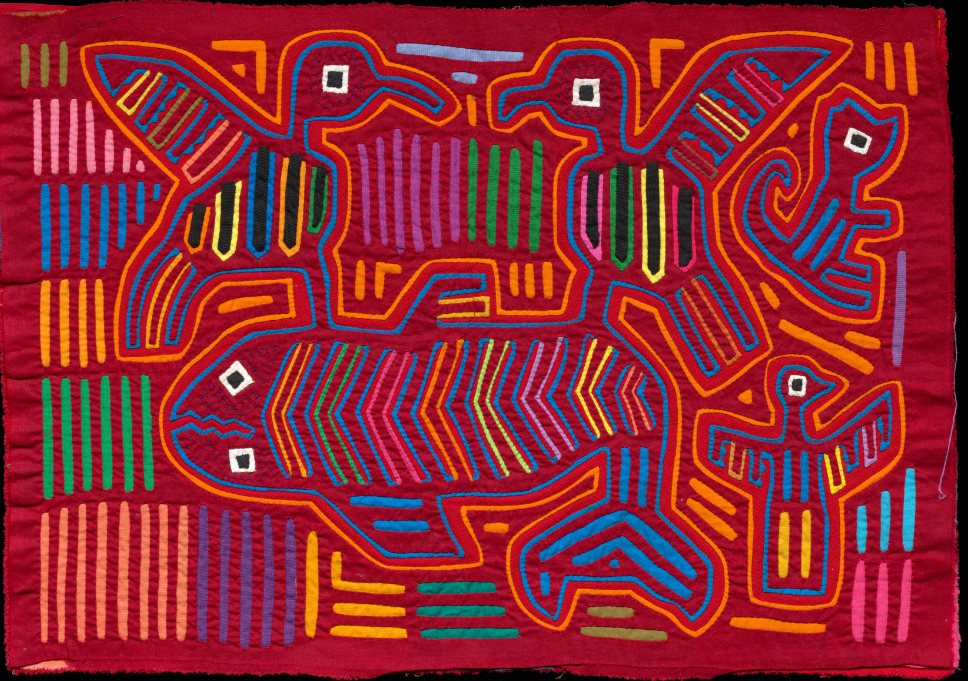 The Guna people live in an autonomous region of coastal Panama. The mola—a blouse with appliqué panels on the front and back—is one of the most recognizable Guna art forms. Guna women devote hours daily to making molas together while they converse about their craft. This social context of production reinforces a shared set of aesthetic principles, including symmetry, contrast, and evenly distributed detail.[1] Well-made molas are admired and copied by others.