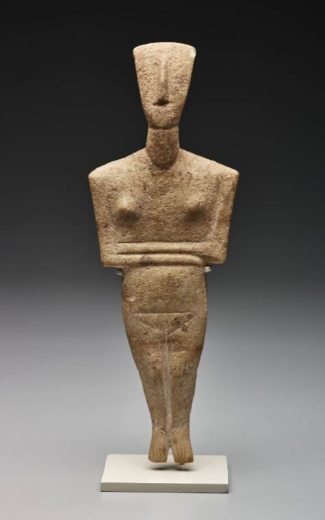 Idol, folded-arm form, Greece, Cycladic, c. 2700–2100 BCE, marble, Dallas Museum of Art, Foundation for the Arts Collection, The Mr. and Mrs. Stanley Marcus Collection of Fertility Figures, 1982.292.FA