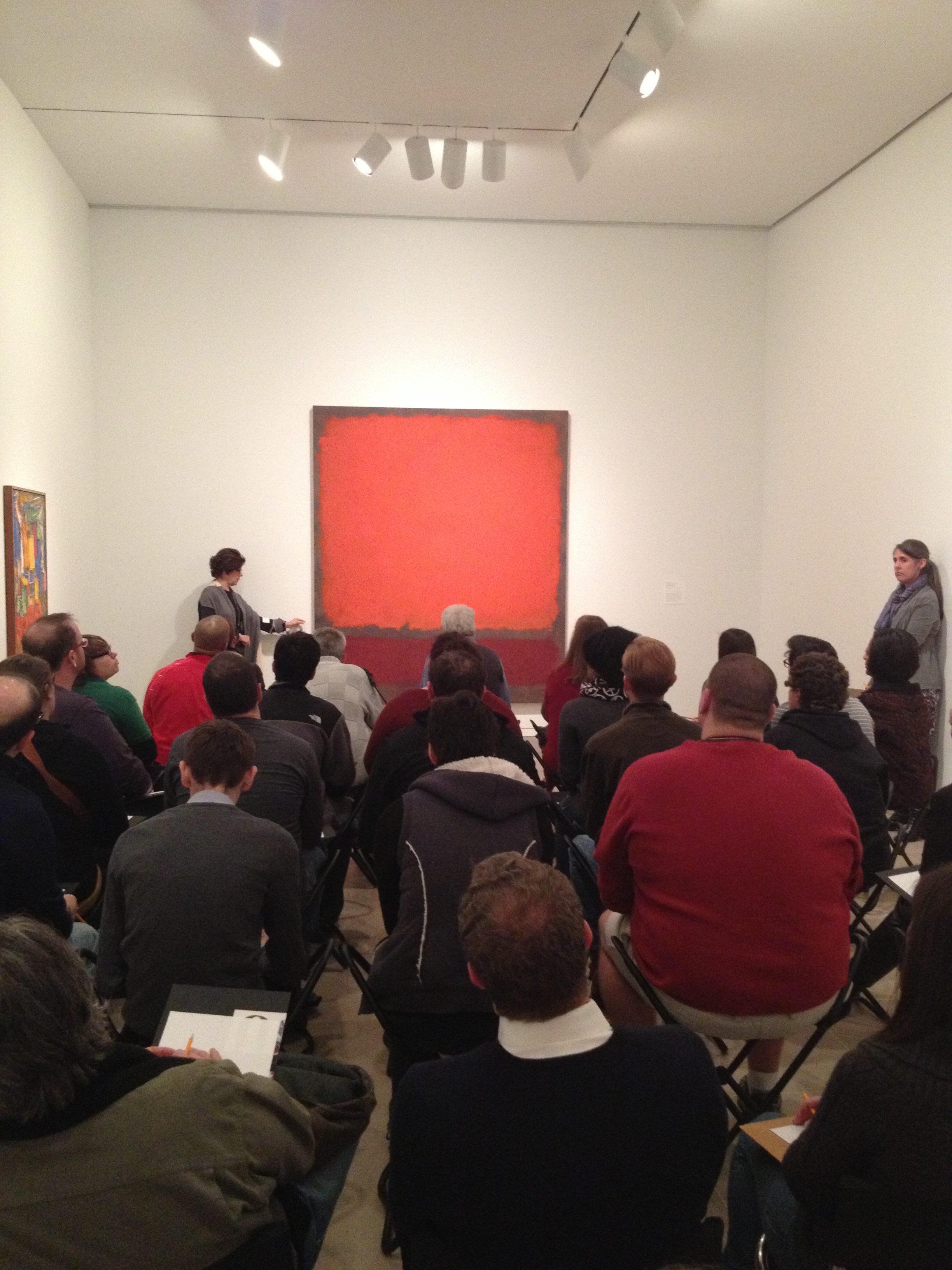 On January 16, the entire DTC staff, ranging from actors to production staff and administrators, joined DMA staff in an afternoon-long workshop. We immersed ourselves in the art of Mark Rothko through lively conversations with Carol Mancusi-Ungaro, who has written on Rothko’s techniques and directed the conservation of his Rothko Chapel paintings; by exploring works of art in the galleries with DMA staff by artists who came before and after Rothko; and through a sustained look and written reflection on Rothko’s painting Orange, Red and Red, which currently hangs in the South Concourse. We finished the afternoon by sharing our responses with each other, seeking to make meaning of what can seem to be an enigmatic painting.