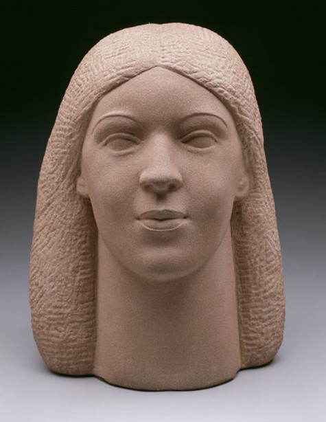 Allie V. Tennant, "Woman's Head," n.d., red sandstone, Dallas Museum of Art, gift of Dr. and Mrs. Robert W. Webb