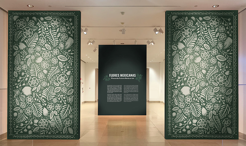 I was never the type of child to draw on the walls, but I’m sure if I had, my mom would not have responded with joy. Joy, however, is exactly what DMA’s Senior Graphic Designer Jaclyn Le was going for when she designed the floral pattern you can see on the walls in the DMA’s exhibition Flores Mexicanas: Women in Modern Mexican Art.