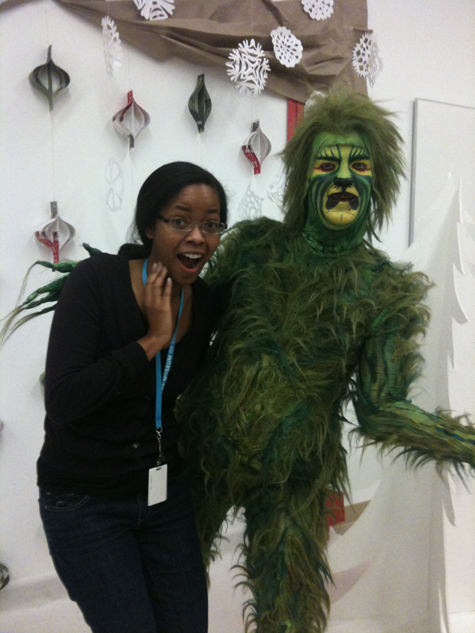 On the first Tuesday of every month, admission to the DMA is free, and we have special activities for our youngest visitors until 3:00 p.m. On December 7, we had a special guest in C3, the Grinch (before his heart grew three sizes in one day). He stopped by from the AT&T Performing Arts Center, where Dr. Seuss’ How the Grinch Stole Christmas! The Musical was opening later that night. DMA staff members could not pass up this photo opportunity.