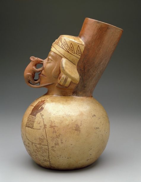 Large jar: figure with rat eating the nose, Moche culture, 400–600 CE, ceramic, slip, and paint, Dallas Museum of Art, The Nora and John Wise Collection, gift of Mr. and Mrs. Jake L. Hamon, the Eugene McDermott Family, Mr. and Mrs. Algur H. Meadows and the Meadows Foundation, Incorporated, and Mr. and Mrs. John D. Murchison, 1976.W.116