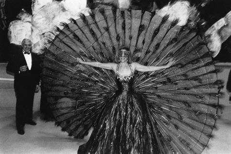 An impressive peacock-esque dress at the 1991 Beaux Arts Ball, “Le Grande Bal Masque des Beaux Arts.”