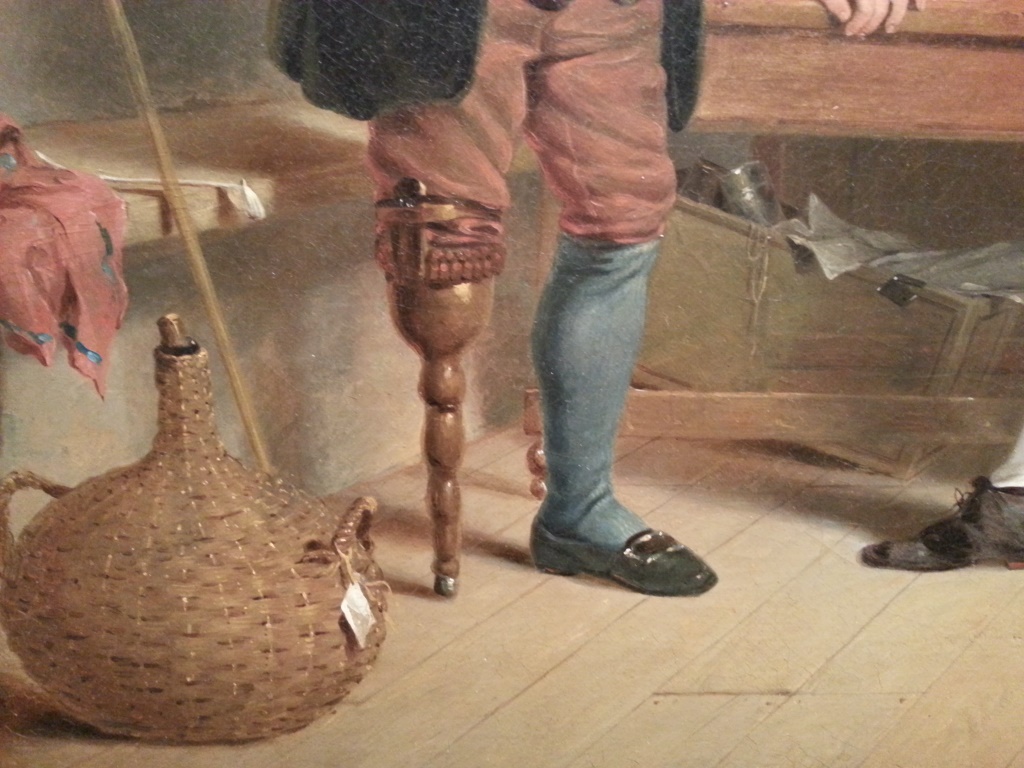Not a shoe, but still pretty cool: Jack Hatchway is a one-legged veteran of the sea, shown here in a painting inspired by The Adventures of Peregrine Pickle by Tobias Smollett