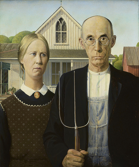 (Images in slide show: Jasper Johns, Three Flags, 1958. Encaustic on canvas. 30 5/8 x 45 1/2 x 4 5/8 in. Whitney Museum of American Art, New York, Art © Jasper Johns, Licensed by VAGA, New York, N.Y.; Gilbert Stuart, George Washington, c. 1821. Oil on wood. 26 3/8 x 21 5/8 in. National Gallery of Art, Washington, Gift of ThomasJefferson Coolidge IV in memory of his great-grandfather, Thomas Jefferson Coolidge, his grandfather, Thomas Jefferson Coolidge II,and his father, Thomas Jefferson Coolidge III.; Frederic Edwin Church, The Icebergs, 1861. Oil on canvas. 64 1/2 x 112 1/2 in. (1 m 63.83 cm x 2 m 85.751 cm). Dallas Museum ofArt, gift of Norma and Lamar Hunt.; Roy Lichtenstein, Cold Shoulder, 1963. Oil and magna on canvas. 68 1/2 x 48 in. Los Angeles County Museum of Art, Gift of RobertH. Halff through the Modern and Contemporary Art Council (M.2005.38.5). Photo courtesy of the Roy Lichtenstein Foundation, by Kevin Ryan.; Grant Wood, American Gothic, 1930. Oil on Beaver Board. 30 3/4 x 25 3/4 in. (78 x 65.3 cm). The Art Institute of Chicago, Friends of American Art Collection.)