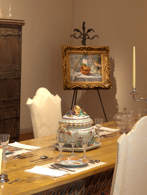 This long table was originally used by Coco Chanel as a desk; however, Wendy decided that this could be useful in another way. She unfolded the leaves and moved it into her dining room to act as a buffet table.