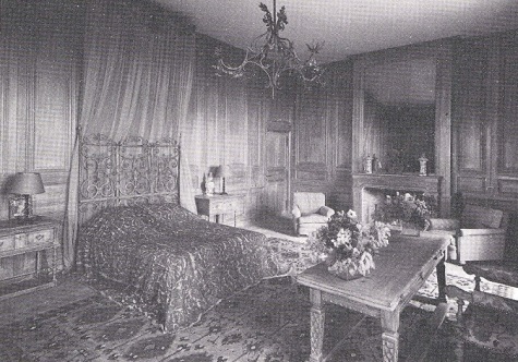 Chanel’s bedroom at La Pausa, with the chandelier now in the Reves entry and the desk at the right, now serving as a buffet table in the Reves Dining Room