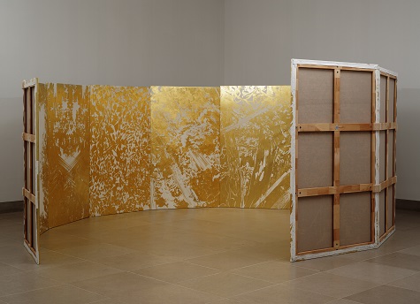 The painting has colors and lines that make my sculpture interesting and recognizable.