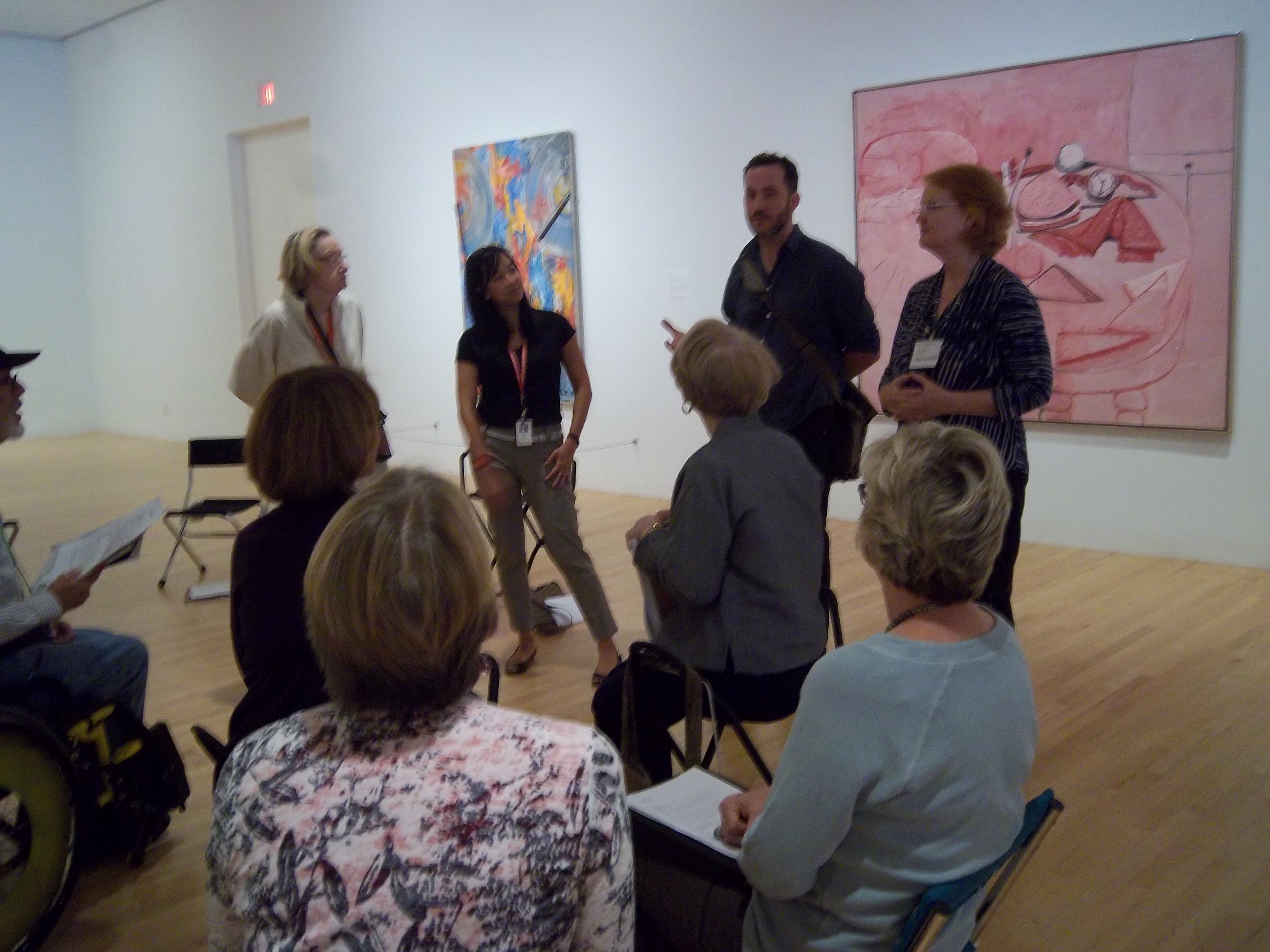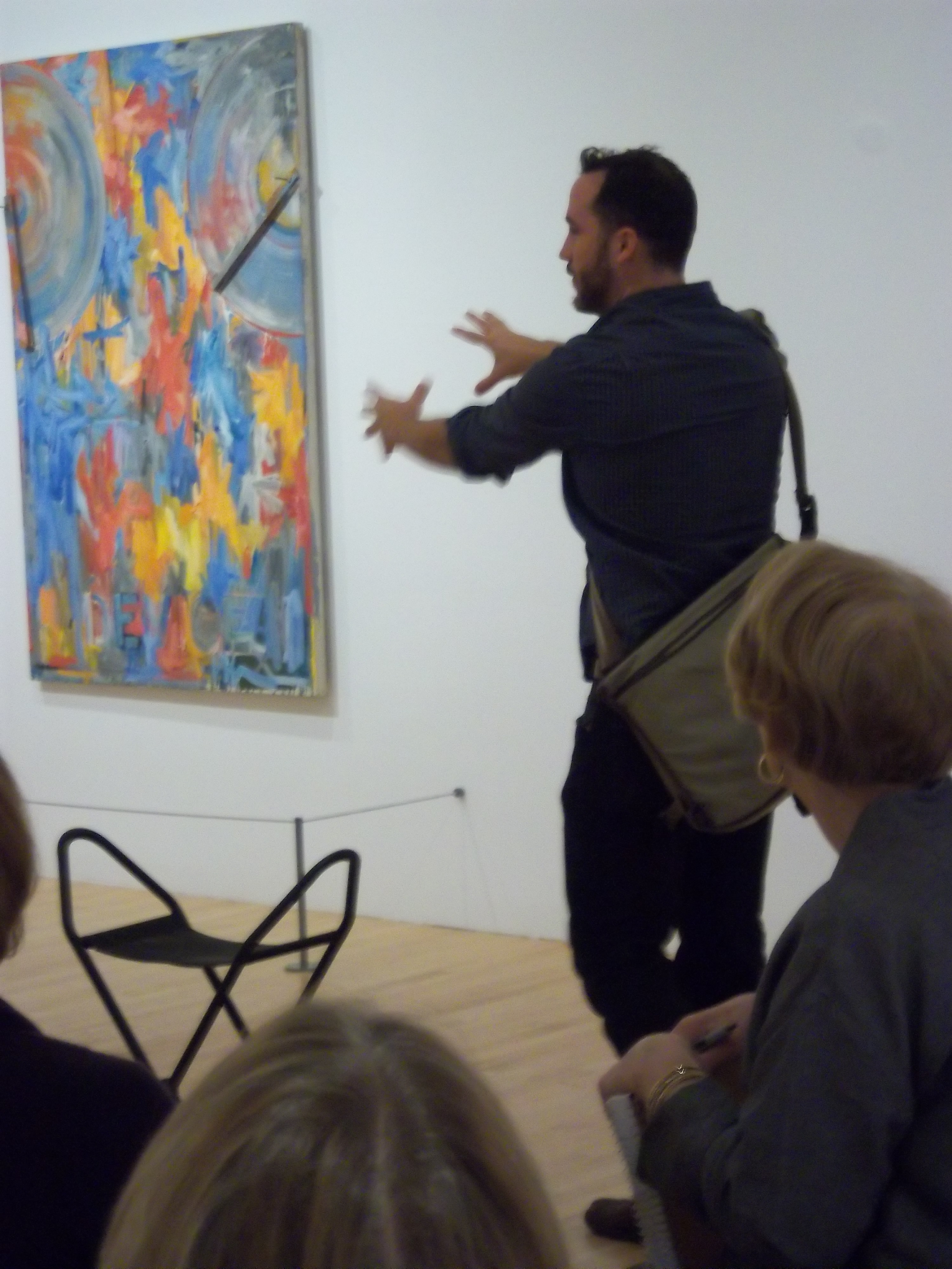 Tom Russotti talks with docents in front of Device by Jasper Johns
