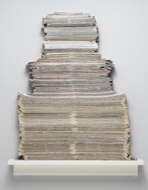 To create this sculpture, Annette Lawrence tore junk mail into strips of equal width. Who needs handmade chains of paper strips when you could decorate your hearth with this?
