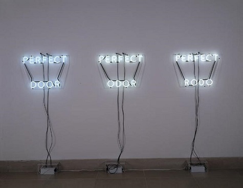 Bruce Nauman, Perfect Door/Perfect Odor/Perfect Rodo, 1972, white glass tubing, clear glass tubing, and suspension frames, Dallas Museum of Art, General Acquisitions Fund, The 500, Inc., Dorace M. Fichtenbaum, Deedie and Rusty Rose, an anonymous donor, the Friends of Contemporary Art and a matching grant from the National Endowment for the Arts in honor of Sue Graze