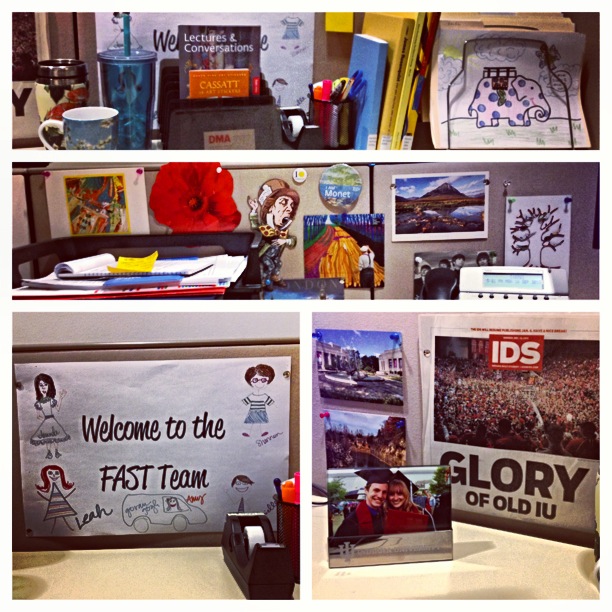 A few weeks in, my desk was finally beginning to look lived-in! It is now decorated with exhibition catalogues, postcards from my travels, an homage to my alma mater, plenty of coffee mugs, and a welcome poster from the FAST Education Team.