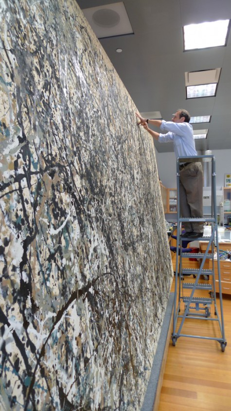 Jim Coddington at work on Jackson Pollock’s One: Number 31, 1950 in the Conservation Studio at MoMA
