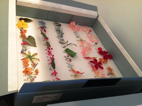 Each of the 342 pieces of the DMA’s own Changing Things artwork is pinned into its numbered spot onto a foam tray inside archival blue-board boxes. The numbers correspond to labeled holes on the plastic template that hangs on the wall for installation.