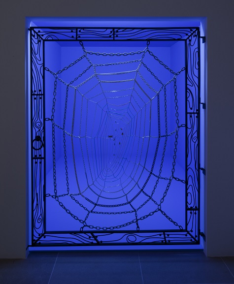 Jim Hodges, Untitled (Gate), 1991, steel, aluminum, copper, brass, paint, and electric lighting, Collection of the artist