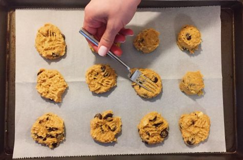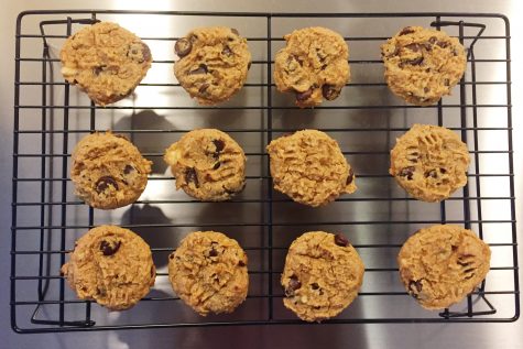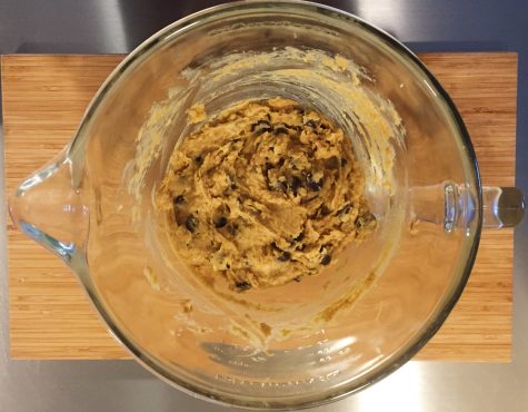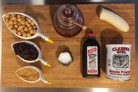 The recipe begins with chickpeas, drained, dried, and chopped in a food processor until they form a fluffy and surprisingly dough-like consistency. I added peanut butter, honey, vanilla, banana, and baking powder to the mix and finished it off with dark chocolate chips. I’m ashamed to say I was not brave enough to try the raw dough.