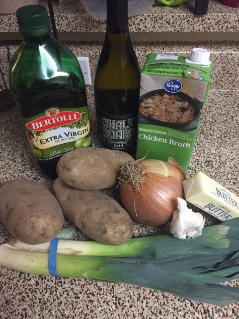 This recipe called for very few ingredients, and three of them were garlic, onion, and leeks. Nothing compliments potatoes better than onions and garlic! Also, any recipe that calls for wine is a friend of mine.