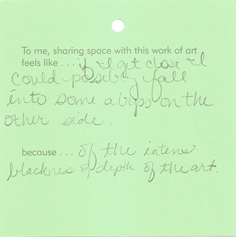 In the Center for Creative Connections, we have a metaphor response wall where visitors can leave their thoughts about Lee Bonteou’s Untitled (35). One of the prompts visitors respond to is: “If this work of art was part of something larger, what would it be?” Multiple responses to this prompt have been “Rocket Ship.” So, as part of our new 9×9 Programing initiative, C3 staff teamed up with artist Rene Muhl to make this response real on a very large scale. Kari Laehr, Center for Creative Specialist, worked with Susan Diachisin, Director of the Center for Creative Connections, and is excited to share her rocket ship-making experience with us. Here’s Kari: