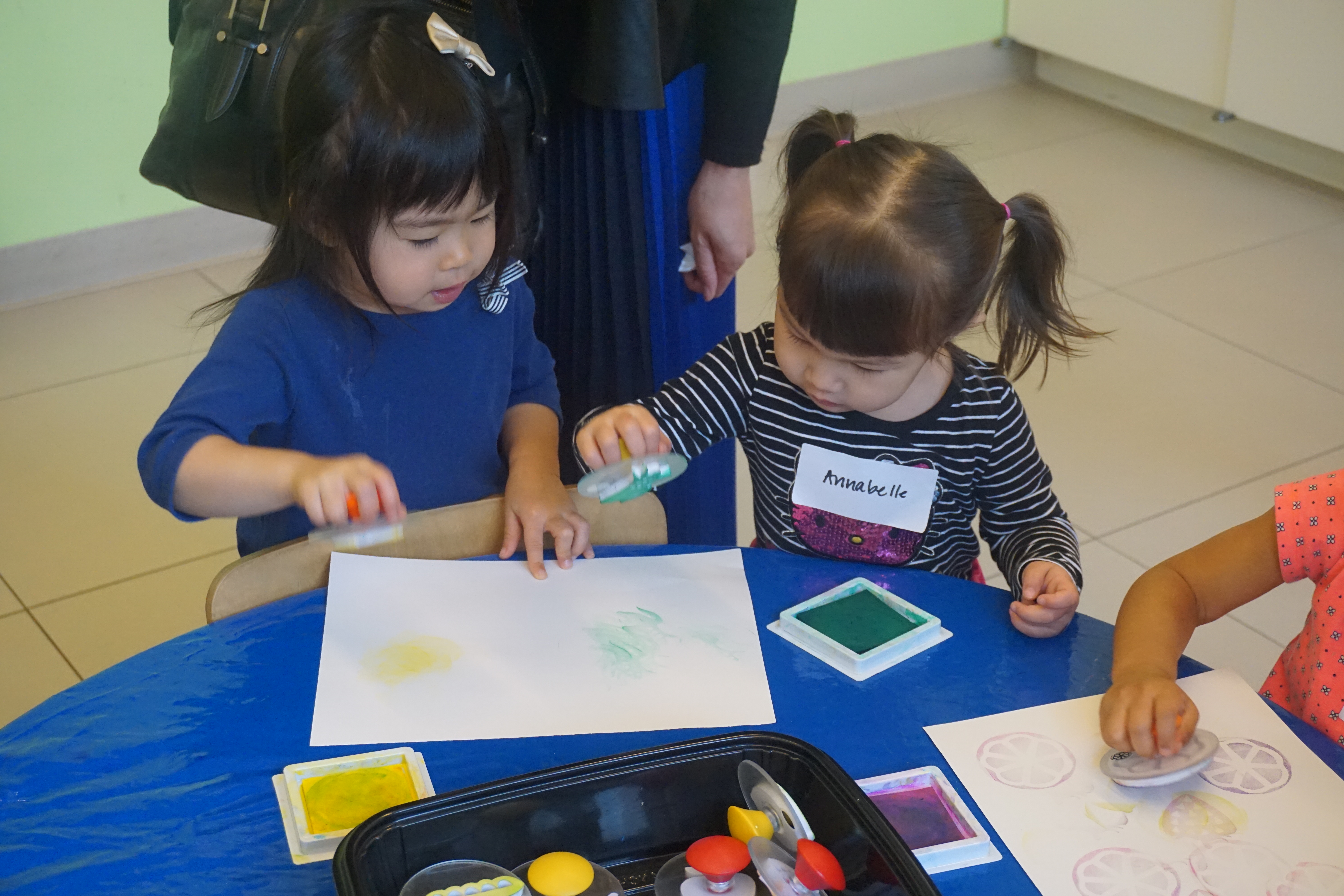 - In toddler art, we stamped a picture of our favorite foods.
