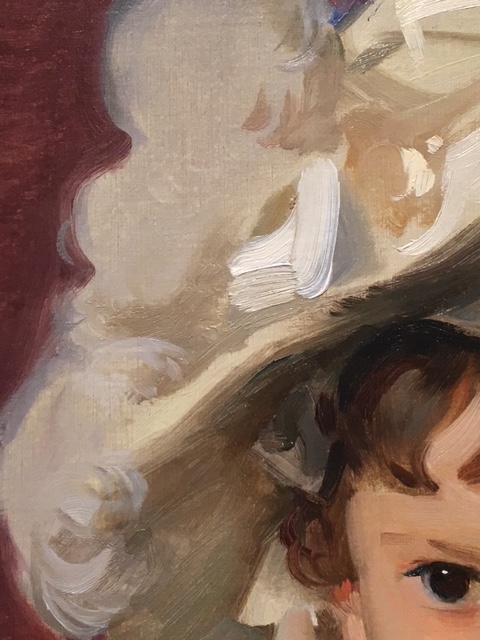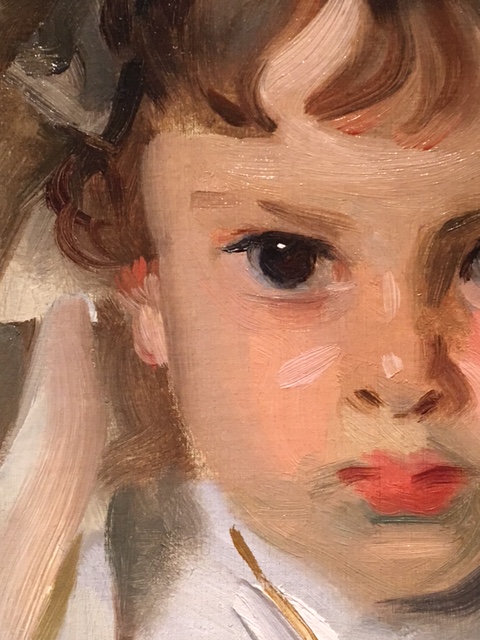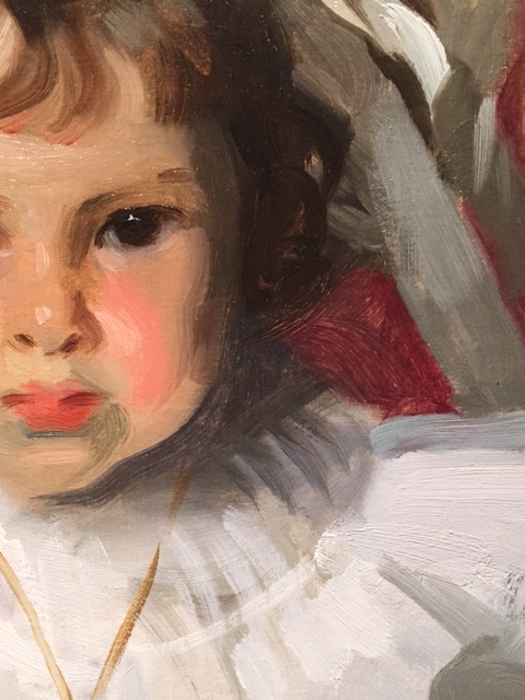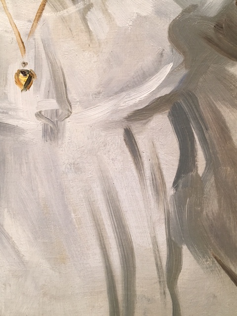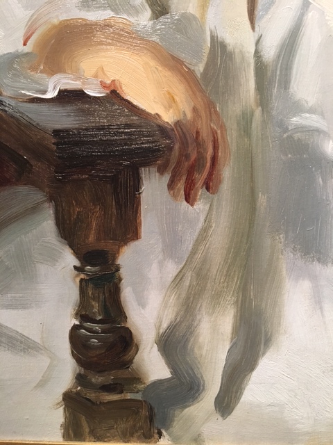 Sargent would hold his brush in the air and then place it down upon the canvas exactly where he wanted it to fall. As described by one of his students, “The stroke resounded almost like a note in music.” My personal favorite is the gray line that travels down the pinafore, just one stroke to suggest the folds of the dress.