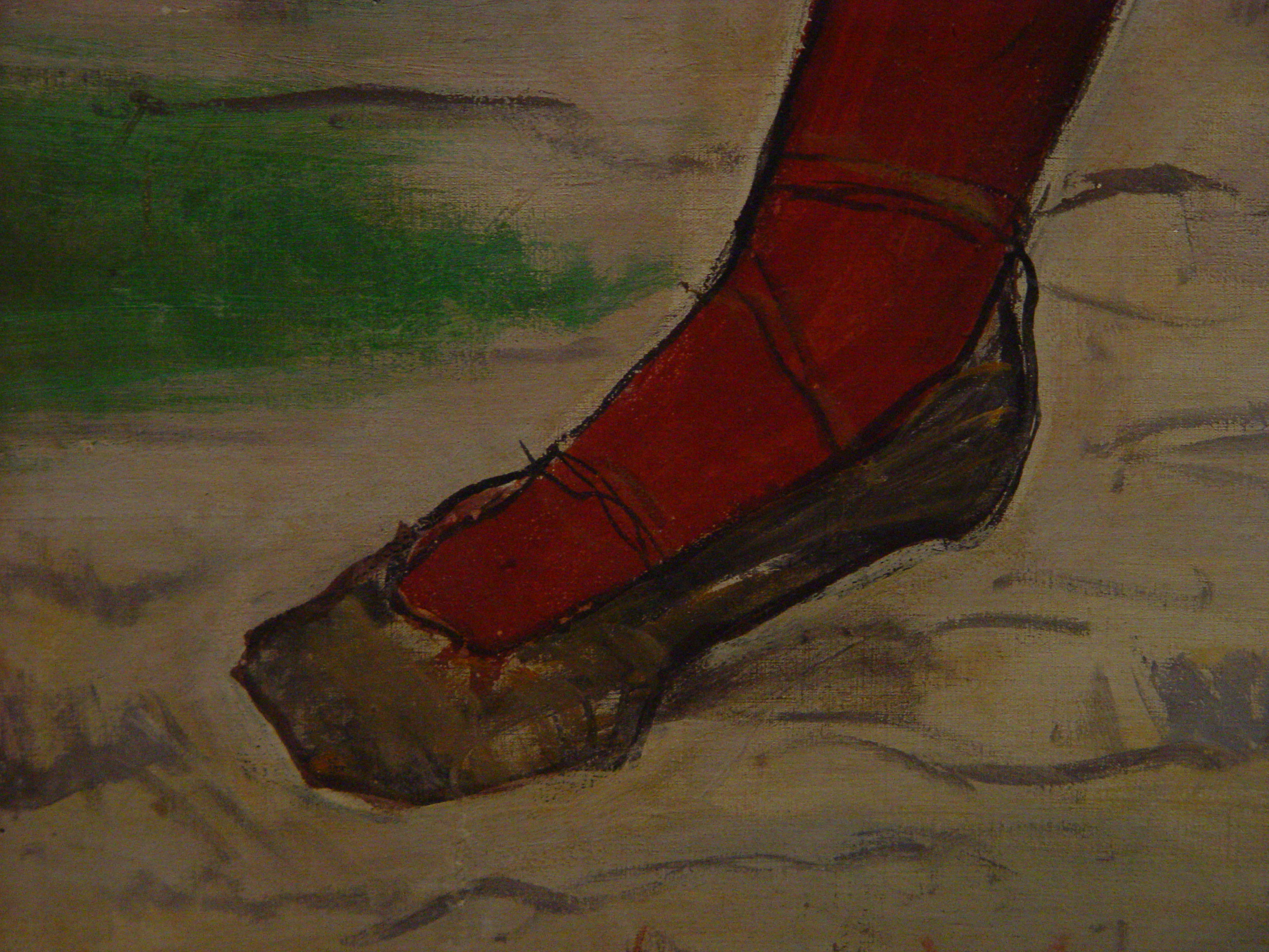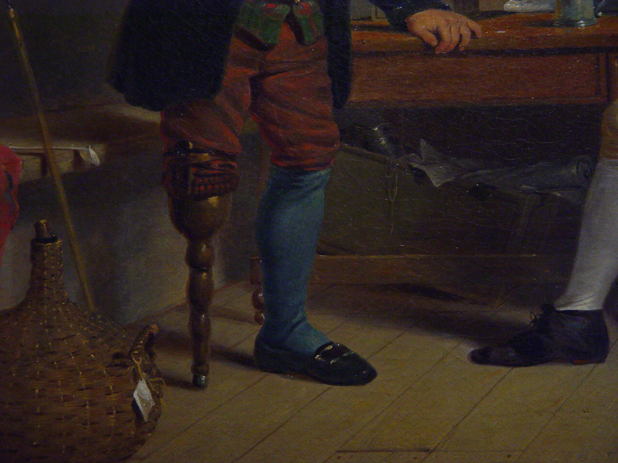 Not a shoe, but still pretty cool: Jack Hatchway is a one-legged veteran of the sea, shown here in a painting inspired by The Adventures of Peregrine Pickle by Tobias Smollett