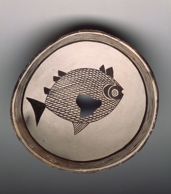 The name Mimbres, which means “willow” in Spanish, was given to a group of people from the Mogollon culture who lived between 150 A.D. to 1450 A.D. The Mimbres people were an egalitarian society and lived in the Northwestern region of New Mexico. The Mimbres people were a very small society with approximately 5,000 members.  Their diet consisted of small game meat such as rabbits, turkeys, sheep, and foxes. They are known for creating clay-fired bowls between 1000 A.D. and 1150 A.D. during the peak of the Mimbres culture, known as the “Classic Mimbres Period”. These bowls were first discovered in the early 1900’s and continue to fascinate archaeologists because of their sophisticated design and level of creativity compared to their contemporaries and other ancient societies.